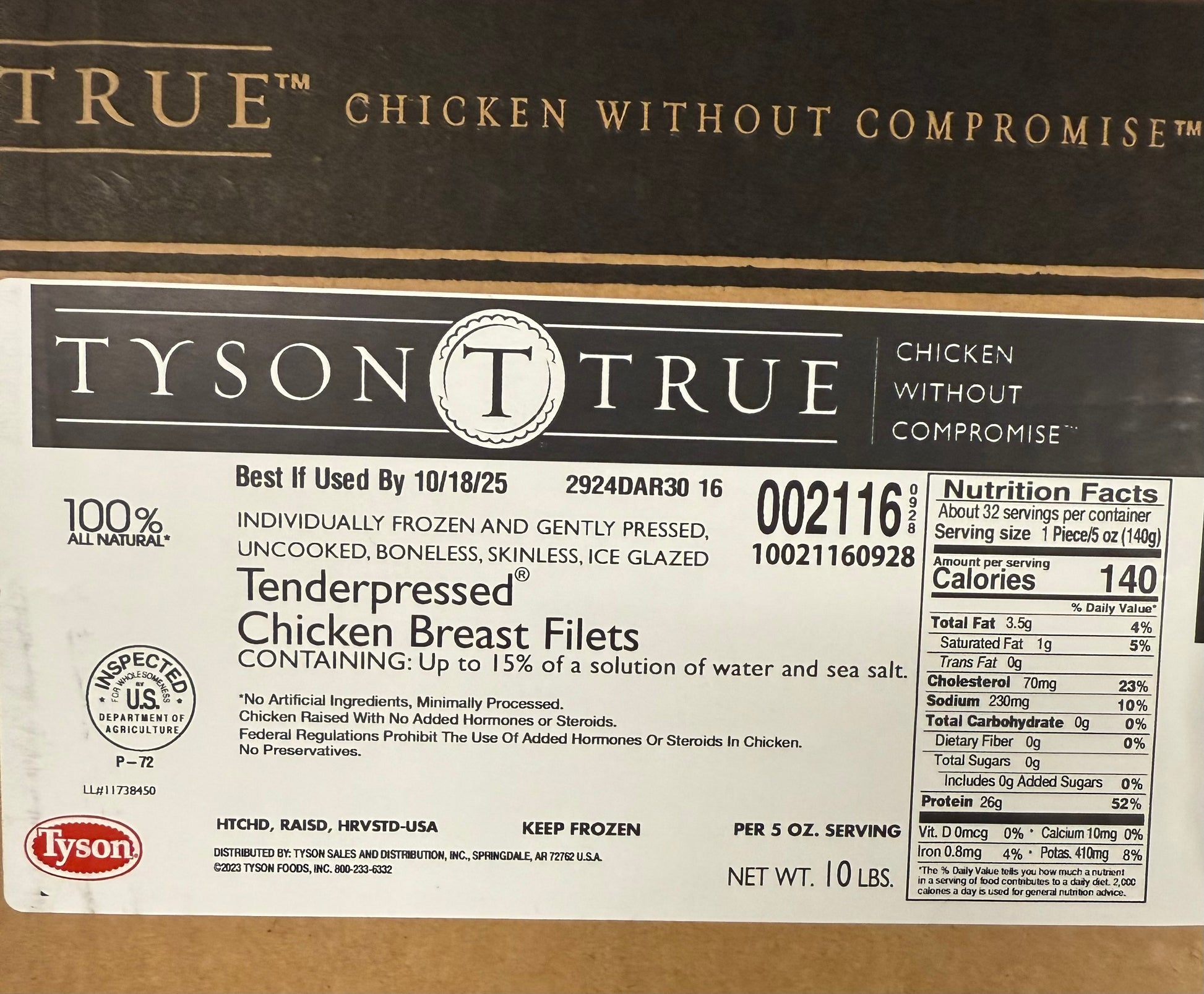 Tyson Boneless Skinless Chicken Breasts, IQF